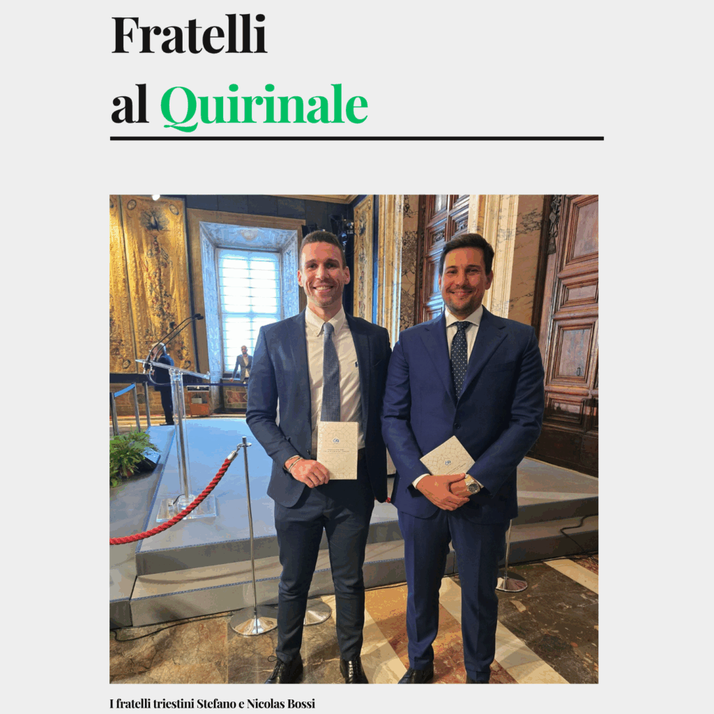 Il 27 ottobre è stato un giorno destinato a restare impresso nella memoria di Stefano e Nicolas Bossi. In occasione dell’apertura ufficiale dei Giorni della Ricerca promossi da AIRC – Fondazione per la Ricerca sul Cancro, i due fratelli triestini sono stati ricevuti al Palazzo del Quirinale dal Presidente della Repubblica, Sergio Mattarella, come riconoscimento per il loro impegno nel sostenere la ricerca scientifica attraverso il progetto “A canestro per la ricerca – Memorial Dario Bossi”.