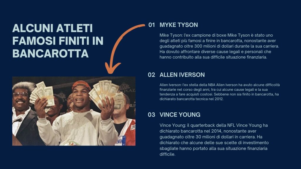 Per rendere il concetto più chiaro ho portato esempi concreti, anche dal mondo dello sport internazionale. Purtroppo, la storia è piena di atleti che, nonostante guadagni da capogiro, hanno visto crollare la propria stabilità economica: